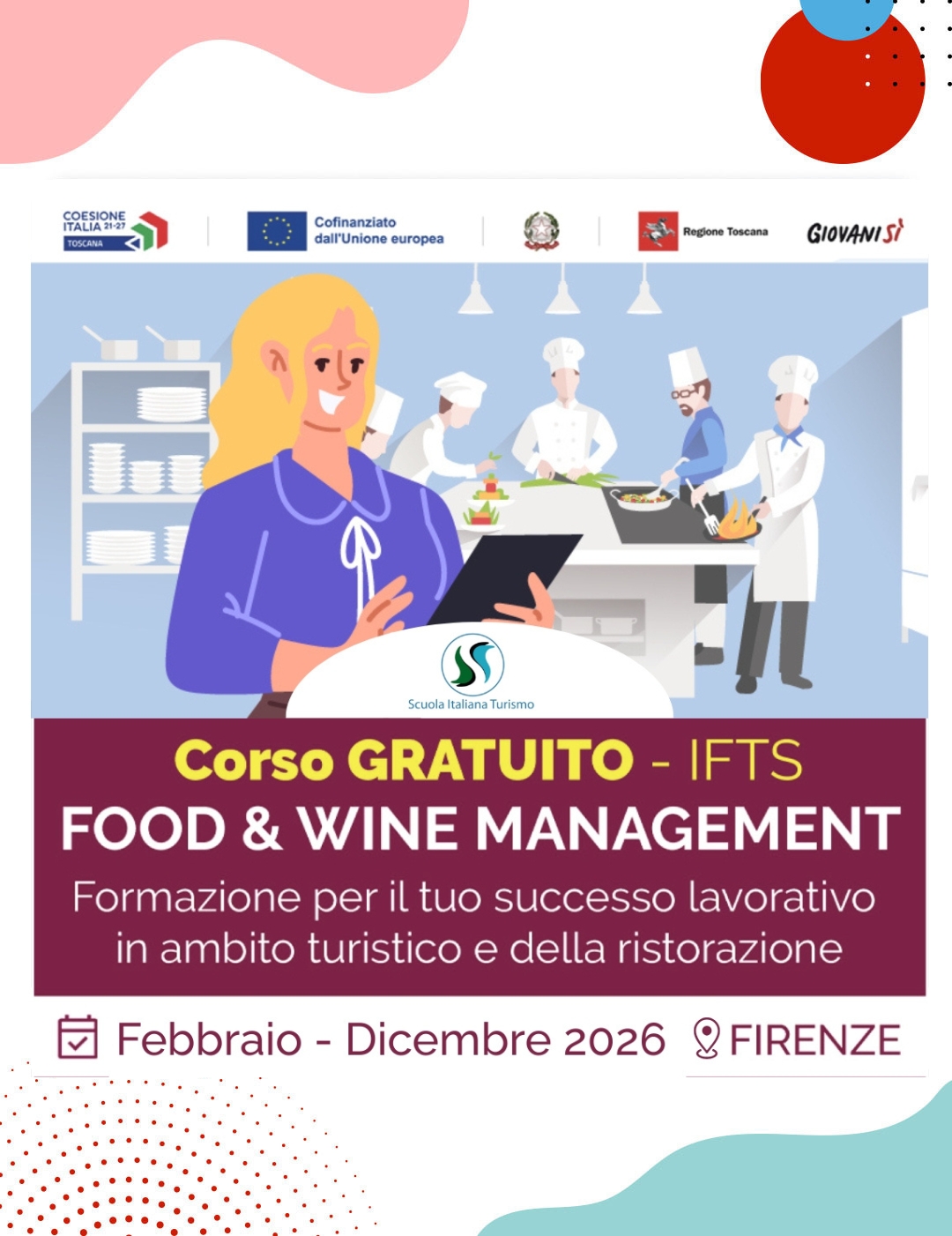 L’agenzia formativa SCUOLA ITALIANA TURISMO SRL (OF0089) capofila di ATS, in attuazione del Decreto Dirigenziale n. 17403 del 29 luglio 2025, informa che sarà attivato il seguente corso di Istruzione e Formazione Tecnica Superiore (IFTS), Codice progetto 321379